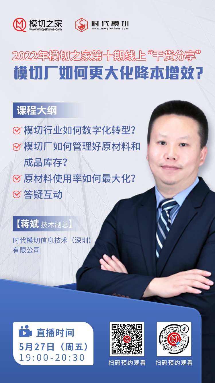 課程主題:《2022年模切之家第十期線上“干貨分享”-- 模切廠如何更大化降本增效?》