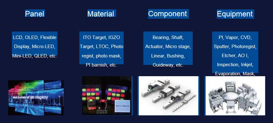 1、面板/技術(shù): LCD、OLED、柔性顯示、Micro-LED、Mini LED、QLED、可穿戴設(shè)備、觸摸屏、車載顯示、微型顯示器等。