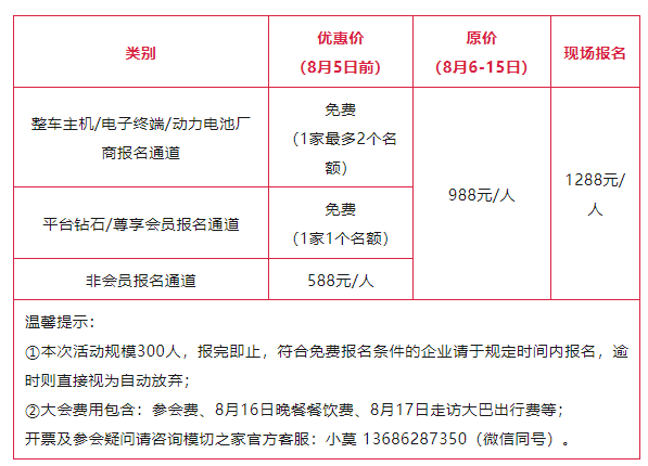 整車(chē)主機(jī)/電子終端/動(dòng)力電池廠商報(bào)名通道(8月5日前) : 免費(fèi)