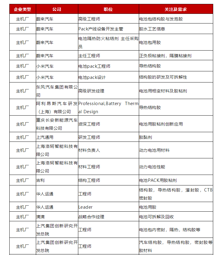 據(jù)最新統(tǒng)計,如果將50KWh電池包和80KWh電池包的用膠量進(jìn)行簡單統(tǒng)計的話,模組集成度越高,系統(tǒng)成組率越高,對膠粘劑的需求量越大,隨著CTP和CTC路線的成熟及逐步推廣,在輕量化、集成化設(shè)計趨勢下,膠粘劑替代結(jié)構(gòu)件是一個確定性的過程,單臺電池包的用膠量還將提升。采用50-80KWh電池包的平均用膠量11.3KG/臺估算,今年電動汽車領(lǐng)域各類膠粘劑的需求量約為5.65萬噸。面對這個增量市場及行業(yè)熱點(diǎn),材薈智造、獵營咨詢、模切之家和全球有機(jī)硅網(wǎng)聯(lián)合新能源汽車及動力電池上下游產(chǎn)業(yè)鏈共同組織“2022中國新能源汽車動力電池用膠粘劑創(chuàng)新發(fā)展論壇”將于2022年11月28-29日在中國·上海舉行。活動將邀請新能源車企及電池配套企業(yè)、BMS系統(tǒng)電器件企業(yè)、膠粘劑生產(chǎn)企業(yè)及貿(mào)易商、設(shè)備生產(chǎn)企業(yè)、高校及科研院所檢測機(jī)構(gòu)及其他業(yè)界領(lǐng)軍代表300余人參加會議。通過主題演講、提問交流、產(chǎn)品展示等多種形式,圍繞新能源汽車動力電池用膠粘劑的最新趨勢、新技術(shù)、新工藝、解決方案、經(jīng)典案例等進(jìn)行經(jīng)驗交流和分享。
