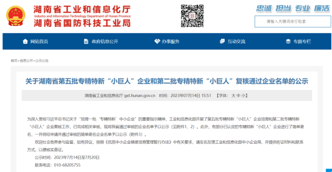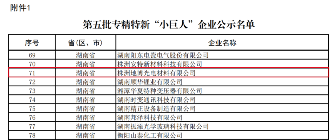 近日,湖南省工信廳發(fā)布了工信部第五批專精特新“小巨人”企業(yè)公示名單,株洲地博光電材料有限公司成功入選,榮列榜單。