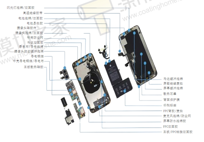 智能手機(jī)模切涂布應(yīng)用場(chǎng)景廣泛,應(yīng)用在智能手機(jī)上的部分模切/涂布工藝部件多達(dá)80多件,其中包括屏幕保護(hù)膜、觸摸屏、顯示屏、背光膜、視窗、黑白膠、鏡頭保護(hù)、銘牌、序列標(biāo)簽、耳機(jī)/話筒O型圈固定、視窗/話筒防塵墊、聽(tīng)筒/話筒緩沖墊、PCB固定板、LCD反射膜、背光片、電池倉(cāng)、電池標(biāo)貼、閃光燈泡棉/雙面膠、高溫絕緣膠帶、電池泡棉/雙面膠、電池易拉膠、攝像頭硅膠件、攝像頭泡棉/雙面膠、聽(tīng)筒/麥克風(fēng)防塵網(wǎng)、馬達(dá)雙面膠、導(dǎo)電布/導(dǎo)電泡棉、攝像頭防塵緩沖泡棉、導(dǎo)電銅箔、中殼導(dǎo)電銅箔/導(dǎo)電布、主板散熱硅膠、馬達(dá)/屏幕緩沖泡棉、屏蔽絕緣麥拉、散熱石墨、FPC背膠/麥拉、主板/FPC粘接雙面膠等