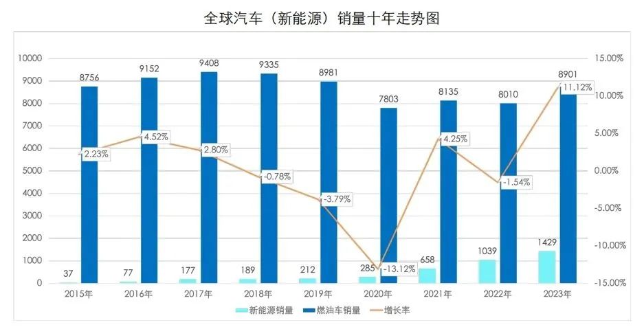 自2011年以來(lái),全球汽車市場(chǎng)保持增長(zhǎng),2017年達(dá)到高峰。盡管2019年有所下降,但隨后市場(chǎng)開(kāi)始回暖,到2023年已經(jīng)逐步恢復(fù)到疫情前的狀態(tài)。