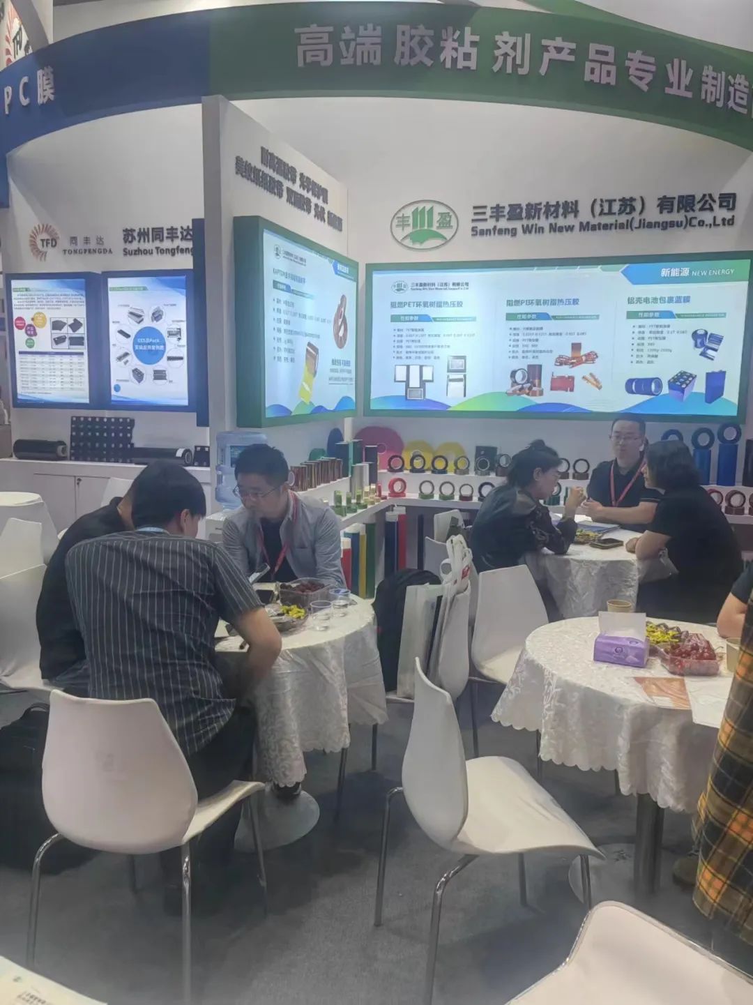 三豐盈新材料(江蘇)有限公司重磅亮相!集中展示了全系列耐高溫膠帶、光學(xué)保護(hù)膜、新能源阻燃膠膜、光伏材料、雙面膠帶等創(chuàng)新應(yīng)用及綜合解決方案,吸引了眾多業(yè)內(nèi)人士駐足觀看和深入交流。