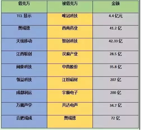 從最近來(lái)看,最為典型的當(dāng)屬ODM龍頭聞泰科技,其35.8億借殼中茵股份完成上市,目前已經(jīng)完全剝離中茵股份地產(chǎn)業(yè)務(wù)輕裝上陣,再如ODM廠商天瓏移動(dòng)就曾42.33億借殼智創(chuàng)科技,TCL顯示4.4億機(jī)殼唯冠科技,奧瑞德41.2億借殼西南藥業(yè),江西聯(lián)創(chuàng)28.5億借殼漢麻產(chǎn)業(yè)!