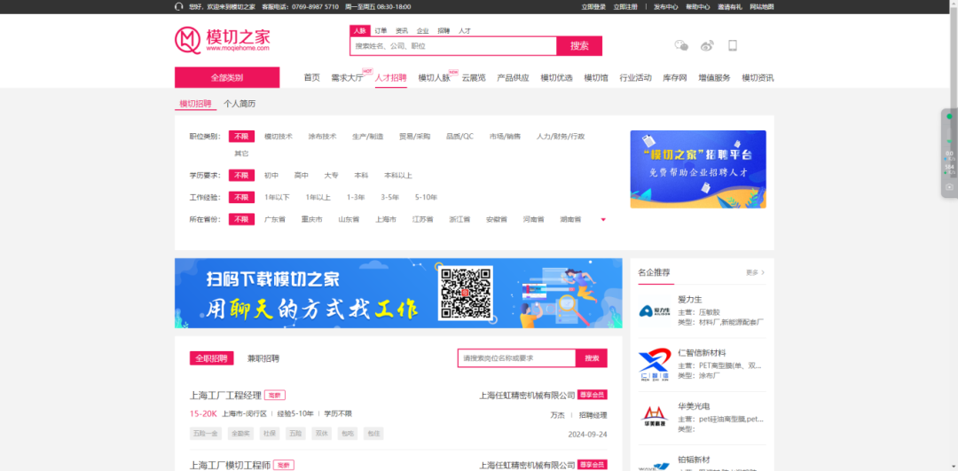 為助力模切廠、涂布廠緩解“招人難”困境,模切之家官網by152.cn、模切之家APP、模切之家小程序同步開設“找工作”、“找人才”版塊,助力行業(yè)優(yōu)質人才就業(yè)對接。