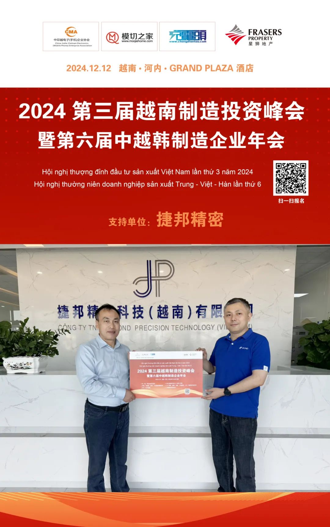 2024年12月,模切之家將聯(lián)和CMA召開主題為“百花齊放、智造越南”-“2024第三屆越南制造投資峰會暨第六屆中越韓制造企業(yè)年會”。歡迎大家共同參與,共謀發(fā)展大計!
