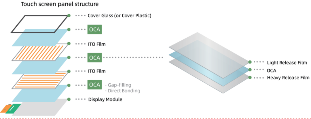 OCA光學(xué)膠是目前觸控屏最佳的膠黏劑,具有高潔凈度、高透光率、低霧度等優(yōu)點(diǎn),并可以解決傳統(tǒng)OCA的缺點(diǎn)和局限性。廣泛應(yīng)用于觸摸屏貼合工藝中,并對(duì)超薄、超窄邊框等觸控顯示產(chǎn)品的升級(jí)有更高的要求。