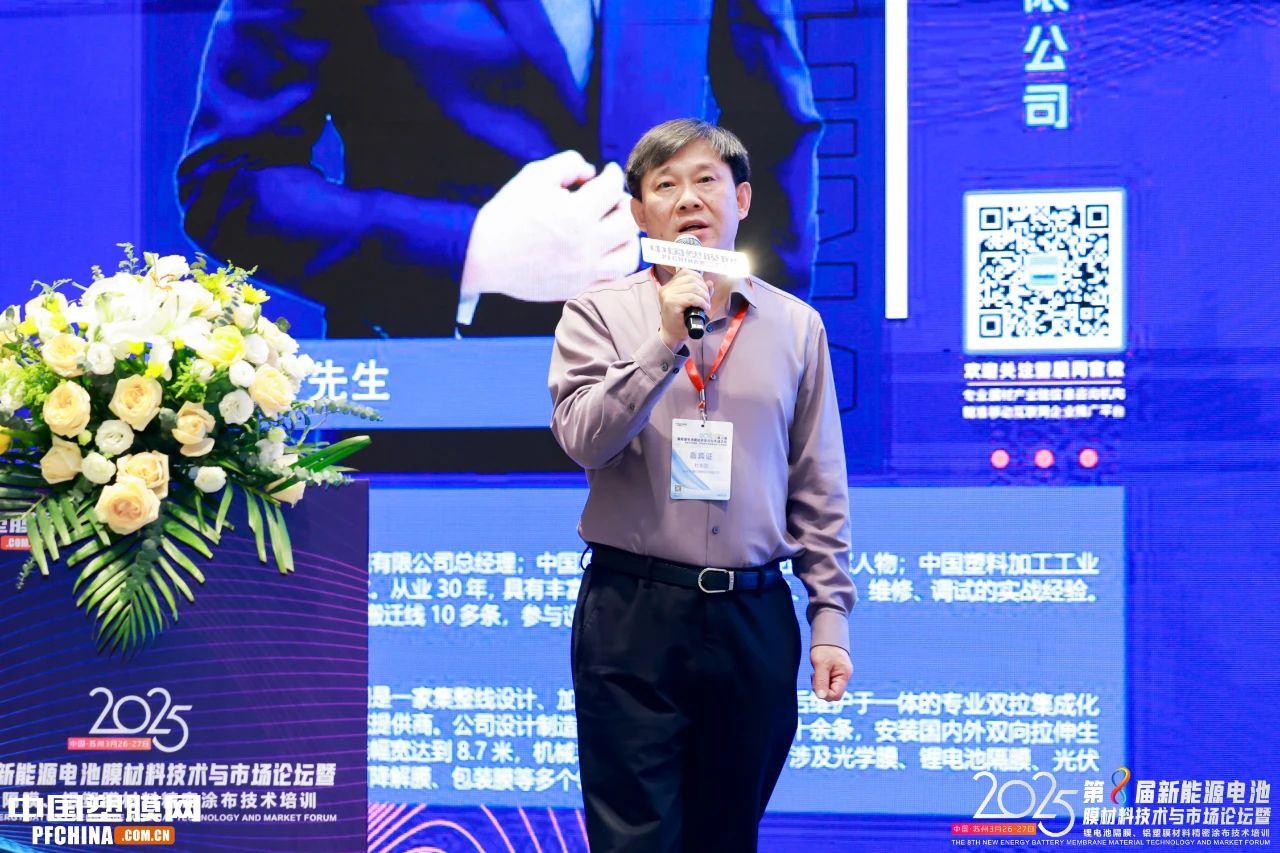 山東永健機(jī)械有限公司 總經(jīng)理 杜永勝 先生,為我們分享《超多層、大幅寬、高產(chǎn)能干法單拉隔膜生產(chǎn)線》。隔膜作為鋰電池的核心組件之一,其制造工藝的優(yōu)化對(duì)提升電池性能至關(guān)重要。近年來(lái),干法單拉隔膜技術(shù)以其高效、低成本的優(yōu)勢(shì),成為行業(yè)關(guān)注的焦點(diǎn)。杜總在隔膜設(shè)備領(lǐng)域有著豐富的實(shí)踐經(jīng)驗(yàn),他的分享為我們揭示隔膜制造的最新技術(shù)進(jìn)展。