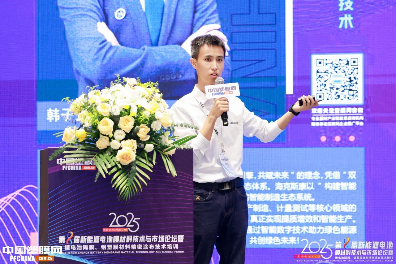??怂箍抵圃熘悄芗夹g(shù)(青島)有限公司 鋰電行業(yè)技術(shù)經(jīng)理 韓子文 先生,為我們分享《智能檢測(cè)與智慧質(zhì)量管理方案助力隔膜及功能性薄膜極限制造》。隨著智能制造技術(shù)的快速發(fā)展,智能檢測(cè)與質(zhì)量管理已成為提升隔膜及功能性薄膜制造水平的關(guān)鍵。韓先生在智能檢測(cè)領(lǐng)域有著豐富的實(shí)踐經(jīng)驗(yàn),他的分享為我們帶來(lái)全新的技術(shù)視角。