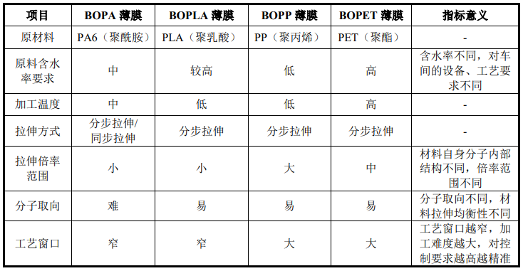 6、BOPA薄膜與BOPLA薄膜等其他相似膜材在原材料、生產(chǎn)工藝上的區(qū)別