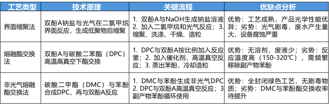 工藝迭代 據(jù)統(tǒng)計,2024年國內(nèi)企業(yè)PC總產(chǎn)能超過300萬噸/年?,占全球產(chǎn)能的35%以上。目前主流的生產(chǎn)工藝主要是界面熔融縮聚法(光氣法)、非光氣酯交換熔融縮聚法等,國內(nèi)非光氣法工藝占比超過45%。