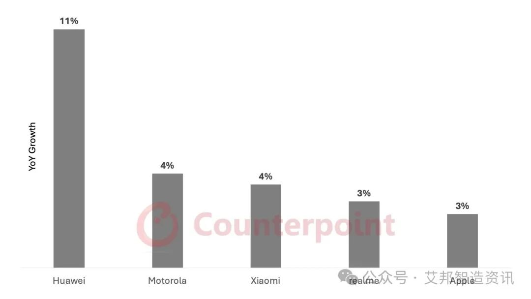 此外,摩托羅拉和小米 2025 年手機(jī)出貨量預(yù)計(jì)增長(zhǎng) 4%,realme 真我和蘋(píng)果手機(jī)出貨量增長(zhǎng) 3%。
