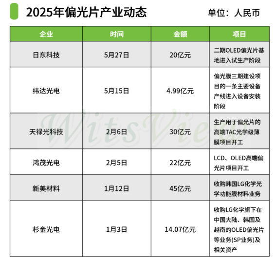 國(guó)內(nèi)偏光片項(xiàng)目多點(diǎn)開(kāi)花