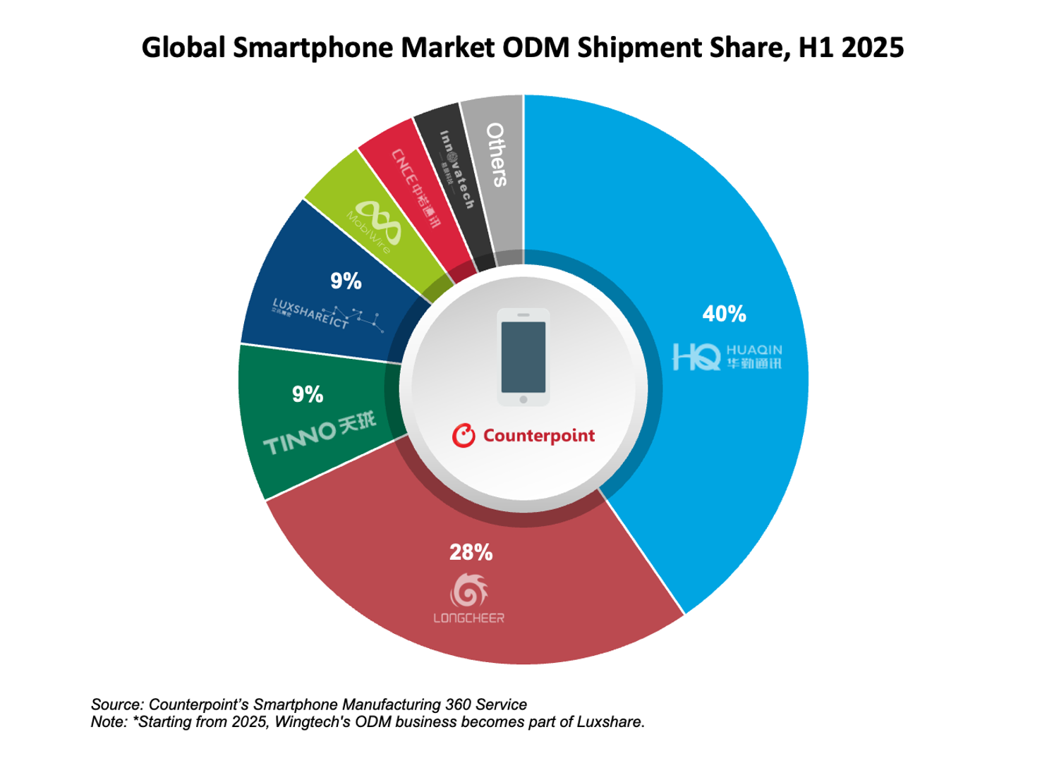 2025年上半年,全球智能手機(jī)出貨量同比增長2%,而外包設(shè)計(jì)訂單同比增長7%,表明OEM廠商正通過加大ODM外包力度來應(yīng)對(duì)激烈的市場競爭與成本壓力。ODM設(shè)計(jì)的智能手機(jī)出貨量占全球總出貨量的43%,創(chuàng)下2019年以來同期最高紀(jì)錄。