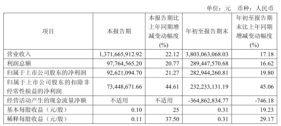 2025年前三季度,東材科技實現(xiàn)營業(yè)收入38億元,同比上漲17.18%。