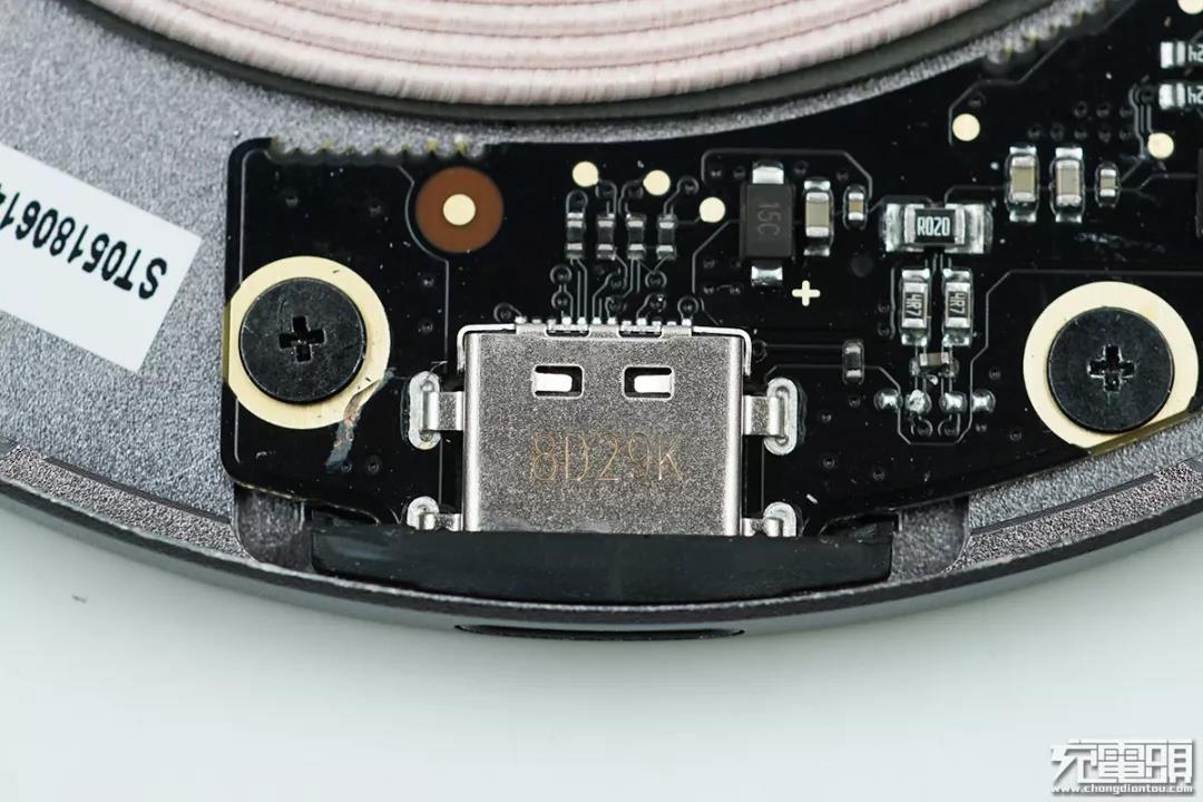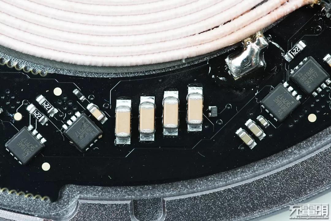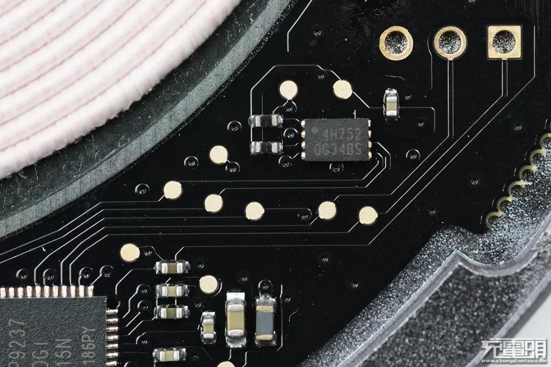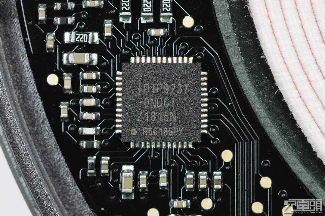 產(chǎn)品采用了美國IDT無線充電方案,IDT P9237,與堅(jiān)果鬧鐘式無線充電座所用型號完全相同。