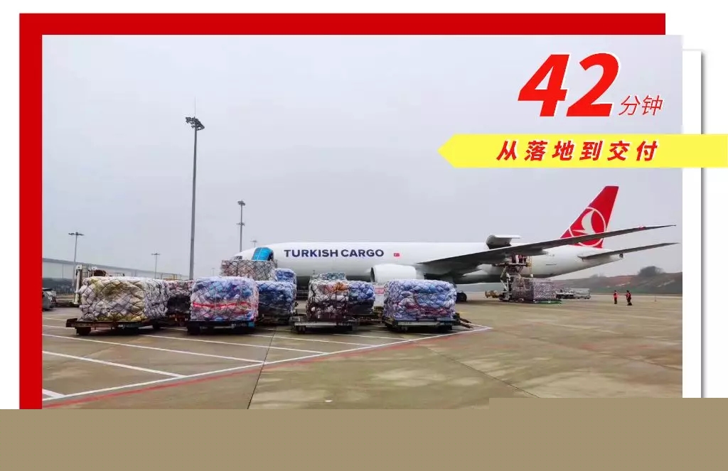 3月8日上午,土耳其航空TK6516貨機(jī)平穩(wěn)降落在白云國(guó)際機(jī)場(chǎng),航班裝載著跨國(guó)海淘的10噸熔噴布。從飛機(jī)落地到熔噴布開始交付貨主僅耗時(shí)42分鐘。