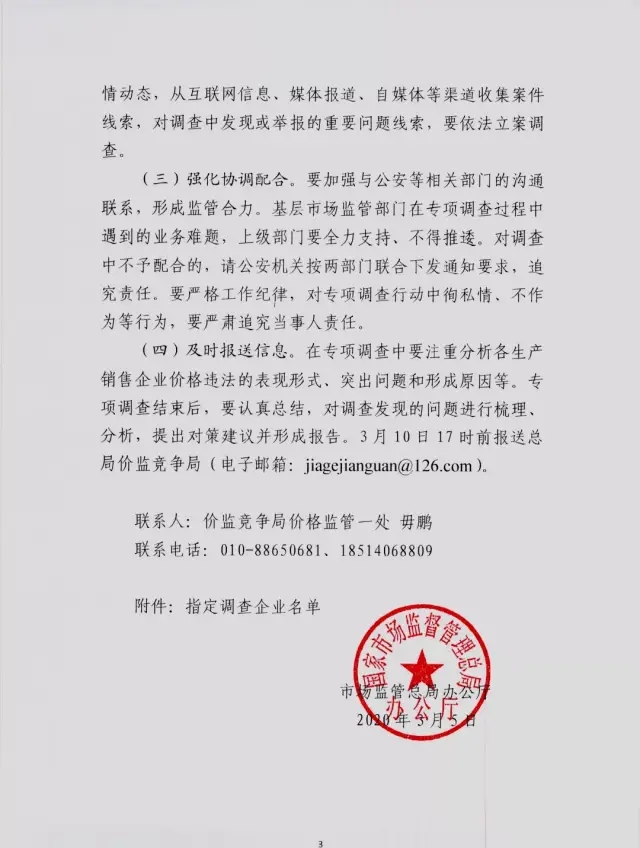 3月5日,國家“市管總”辦公廳下發(fā)紅頭文件,針對開展熔噴布價格專項調(diào)查的特急通知,內(nèi)容如下: