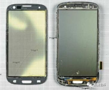 這個(gè)應(yīng)用是粘接手機(jī)或者平板電腦的顯示屏和機(jī)殼邊框,專業(yè)名詞叫l(wèi)ens bonding,俗話也叫“口子膠”,粘接要求是膠帶切成一個(gè)“回”字型以后,這個(gè)“回”字的邊,寬度在1mm左右,能夠防水,防塵,達(dá)到IPX67測(cè)試要求,耐高溫高濕,以及耐跌落沖擊,手機(jī)四個(gè)角,六個(gè)面的跌落以及類似滾筒洗衣機(jī)那樣的滾筒測(cè)試后,膠帶依然粘接,屏幕不開(kāi)膠。如下圖手機(jī)邊框就是那個(gè)Lens bonding蓋板貼合的應(yīng)用,而這個(gè)面粘接是OCA全貼合的應(yīng)用。