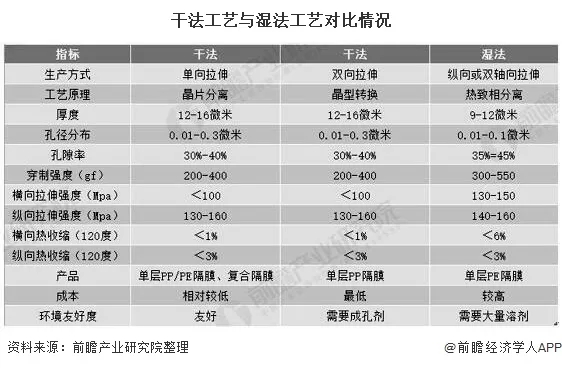 目前鋰電池隔膜主流為聚烯烴隔膜,根據(jù)成孔機(jī)理可以分為干法和濕法。其中干法又分為單向拉伸工藝和雙向拉伸工藝。