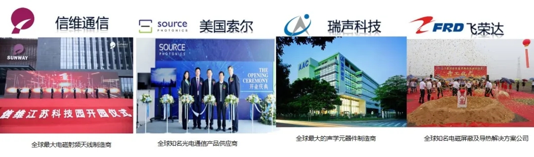 圍繞通信產(chǎn)業(yè),重點(diǎn)主攻設(shè)備、微基站、光纖光纜、專網(wǎng)通信、音射頻及模組、精密結(jié)構(gòu)件等產(chǎn)業(yè)鏈廠商和關(guān)鍵項(xiàng)目,目前金壇已經(jīng)集聚了微宙電子、南方光纖、索爾思、盈科通信、信維通信、飛榮達(dá)等高端優(yōu)質(zhì)項(xiàng)目。